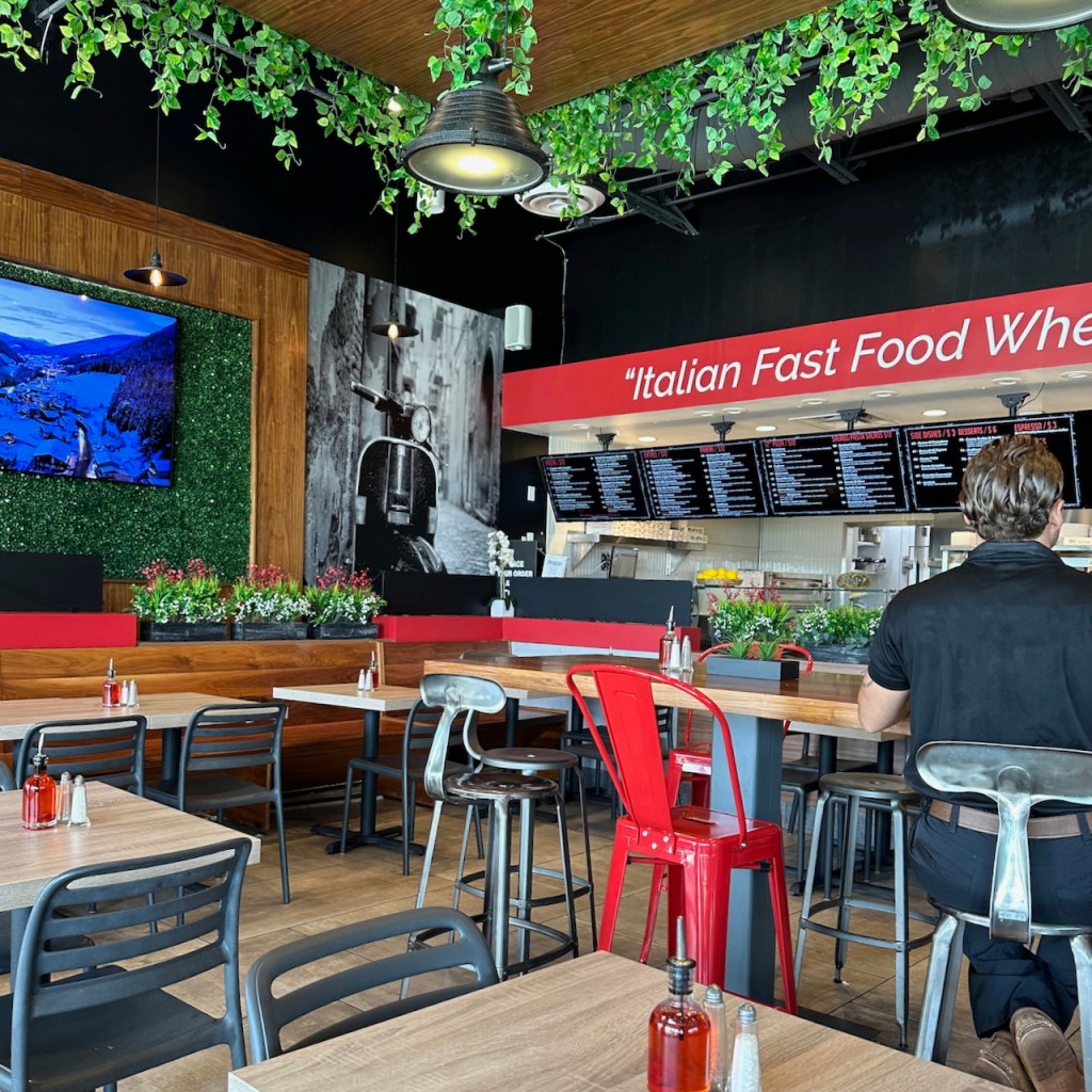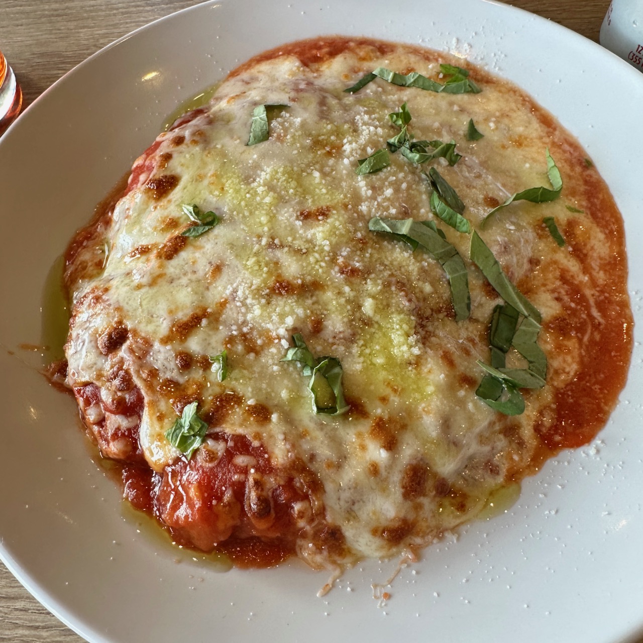Lunch August 2023, 1823 East Commercial Blvd – They may call it fast food but, you’ll be convinced you’re in a full service Italian restaurant charging twice the price. At this writing, all main dishes are $12 and sides are $3. Make your selections then pay at the register and your meal is brought to your table. The food is served on real plates with heavy weight utensils. My Chicken Parmigiana was moist, tender, and filled the plate. The side of Penne Al Pomodoro was perfectly al dente with a terrific classic pomodoro sauce, Molto Bene!  Also ordered was Eggplant Parmigiana with Mortadella, tomato sauce melted cheese. This is a must try restaurant for good for that won’t break the bank…and an alanEATS Fav!