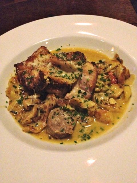 Let’s begin at the beginning…here are some of my favorite starters: Roasted Artichokes with garlic butter, served with a dipping sauce; the French Onion Soup has that nicely melted cheese with crispy edges sealing in the hot fragrant soup; Clams, Brats and Beer served in a bowl with wedges of toasted bread so you can soak up the wonderful broth its cooked in; and the Little Shorties, which are lollipop chicken wings with red bean and ginger and a garlic dipping sauce…really tasty. Several different salads are offered and although I have not sampled them yet, the portions look ample and seem to be popular. Sandwiches I liked included: the Cocka-Doodle-Do, (which the wait staff can say without snickering)- a crispy and juicy chicken filet served with herb slaw; the Nemo a fish sandwich that’s not only tasty, but healthy; and my favorite, the Bratburger, which contains bratwurst meat formed into a paddy and grilled with house made sauerkraut and shallot jam. Mere hot dogs never tasted like this. Must have some Sides with the above and the standouts for me are the Mac & Cheese, Heirloom Tomatoes and the tasty Slaw. And for those who didn’t like their Spinach as a child, the adult sauté version will finally change your mind. Under the heading Standards is a collection of larger plates. The stand out, Mabel’s Chicken, is moist roasted thigh meat nestled atop pan gravy with house made spaetzle. If you desire healthy, try the fresh fish En Papillote (in parchment), a cooking technique that steams the fish in its own juices combined with other ingredients. The Three Lil’ Cochons are medallions of breaded pork loin filled with shrimp stuffing and finished with a rich Tasso cream sauce. The sliced Iron Cast Hanger Steak will fulfill your desire for meat. It’s soft with good flavor from the dry rub. The steak is plated with Maître d’Hôtel Butter between the slices for added flavor, but it won’t harm the dish should you decide to leave it off. Finally, try the dessert of the day. They are decadent and delicious and need your attention. Did I mention they make milkshakes too?