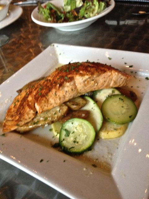 Although the menu lists several Salads, Sandwiches and Burgers we chose from the “House Plates” offerings.  Dishes I tasted and enjoyed and would order again include; Grilled Skirt Steak, Grilled Argentinian Steak and the Bronze Roasted Salmon. The steaks like all the grilled items here are done to the temperature ordered. Be advised that they have a really good grill man here. The salmon was good, simply done and reasonably priced. I couldn’t help thinking, however, how that salmon would be, brushed with a little Teriyaki or Tamari Sauce and lightly grilled. Just think’n.